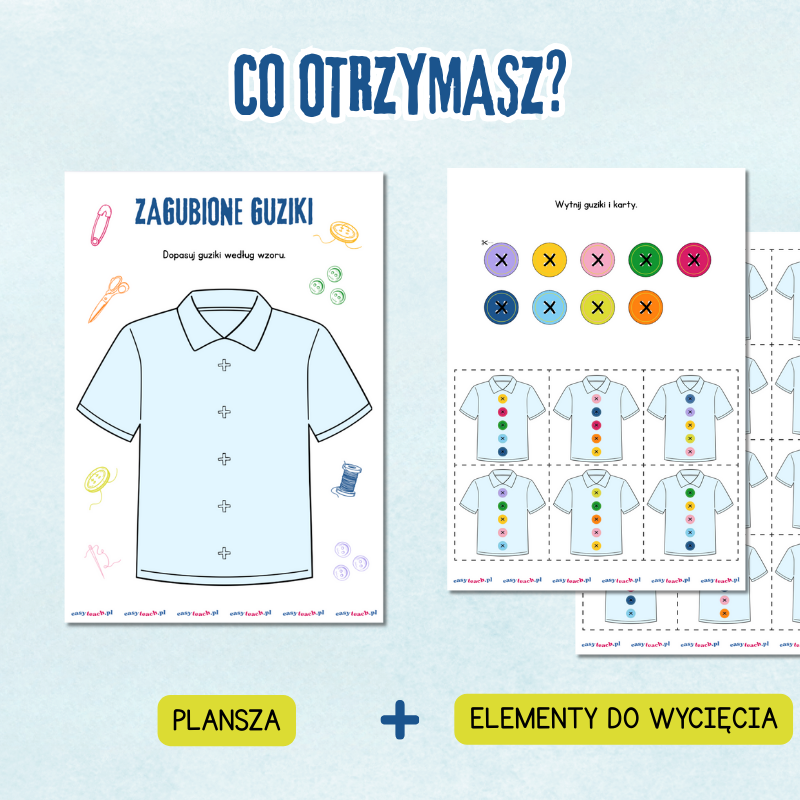 Gra „Zagubione Guziki” jest także dostępna w e-booku „10 gier edukacyjnych” za 49 zł! Znajdziesz w nim więcej inspirujących zabaw dla swojego dziecka! 🌟